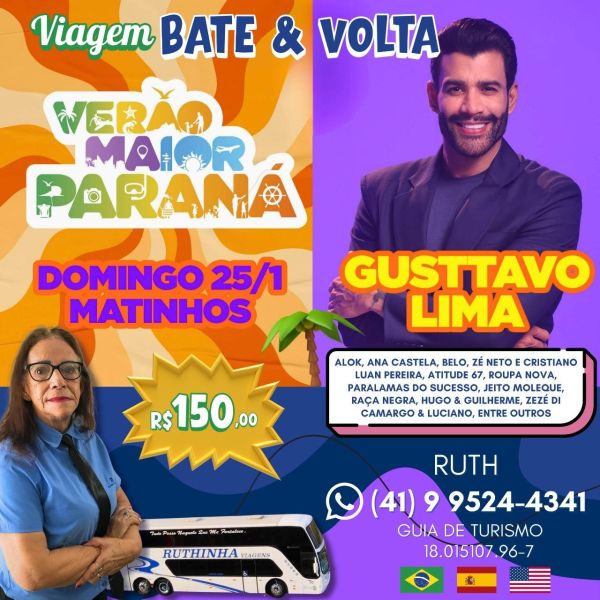 | 19/12/2025 (R$ 240,00) | Incluso no pacote: - Transporte de ida e volta (Ônibus) - Guia - Serviço de bordo: Água mineral, refrigerante e lanchinho (ida) e na volta água mineral - Sorteio de brindes |